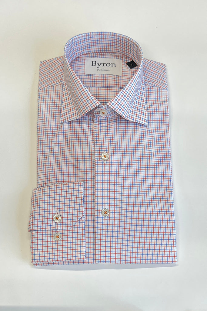 Byron Blue Orange Tattersall Performance Shirt big and Tall