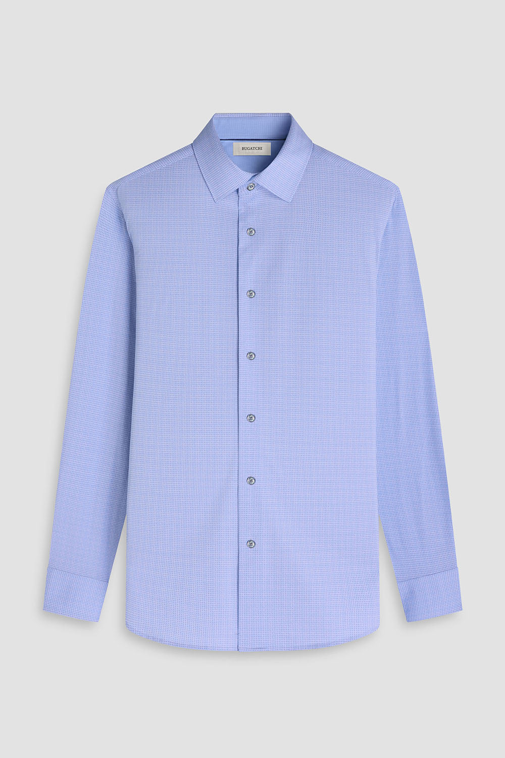 Bugatchi long-sleeved shirt in features a point collar, mother-of-pearl buttons, and a curved hem for a sleek tucked or untucked look. The notched cuffs are adjustable to allow for customized fit and also convertible to accommodate cufflinks. OoohCotton® is a performance, double-mercerized, wrinkle-resistant, breathable, and easy-care cotton blend with 8-way stretch, quick-dry, and thermal comfort properties. HF9622K61