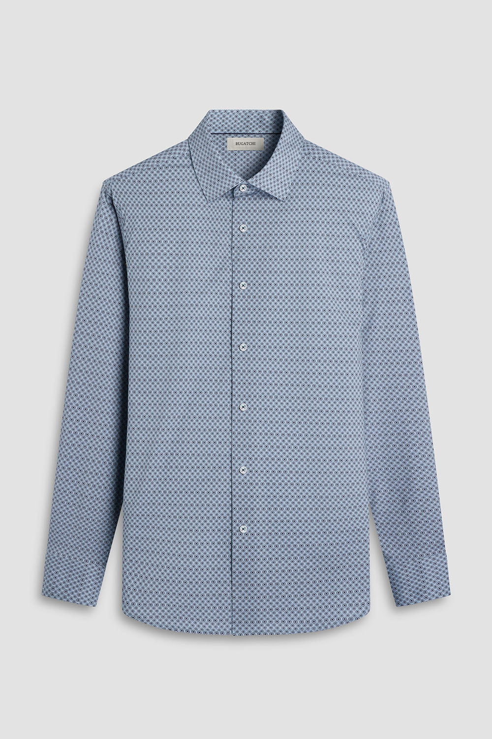 Bugatchi long-sleeved shirt in features a point collar, mother-of-pearl buttons, and a curved hem for a sleek tucked or untucked look. The notched cuffs are adjustable to allow for customized fit and also convertible to accommodate cufflinks. OoohCotton® is a performance, double-mercerized, wrinkle-resistant, breathable, and easy-care cotton blend with 8-way stretch, quick-dry, and thermal comfort properties. HF9129K60