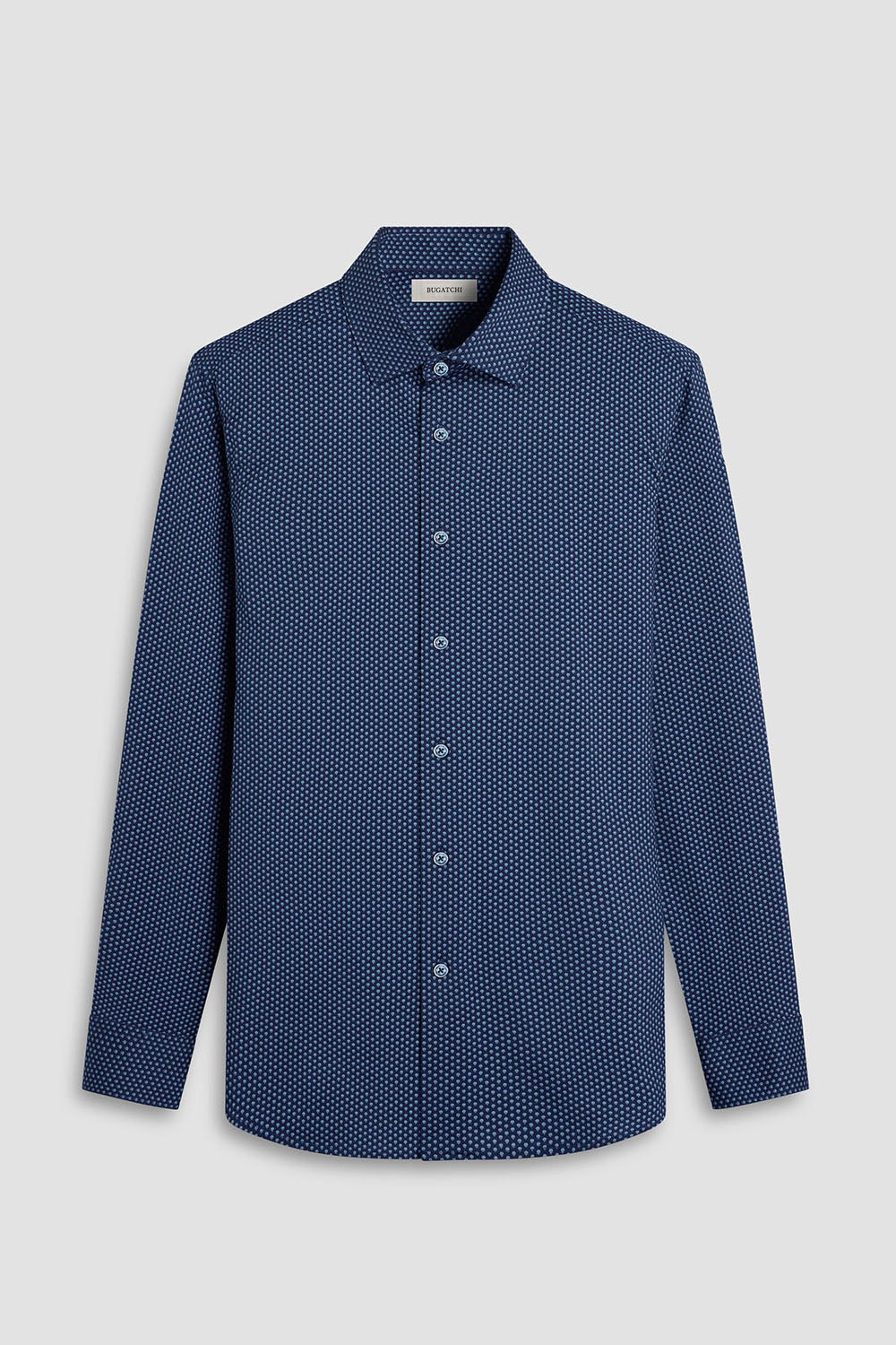 Bugatchi long-sleeved shirt in features a point collar, mother-of-pearl buttons, and a curved hem for a sleek tucked or untucked look. The notched cuffs are adjustable to allow for customized fit and also convertible to accommodate cufflinks. OoohCotton® is a performance, double-mercerized, wrinkle-resistant, breathable, and easy-care cotton blend with 8-way stretch, quick-dry, and thermal comfort properties. HF9183K60