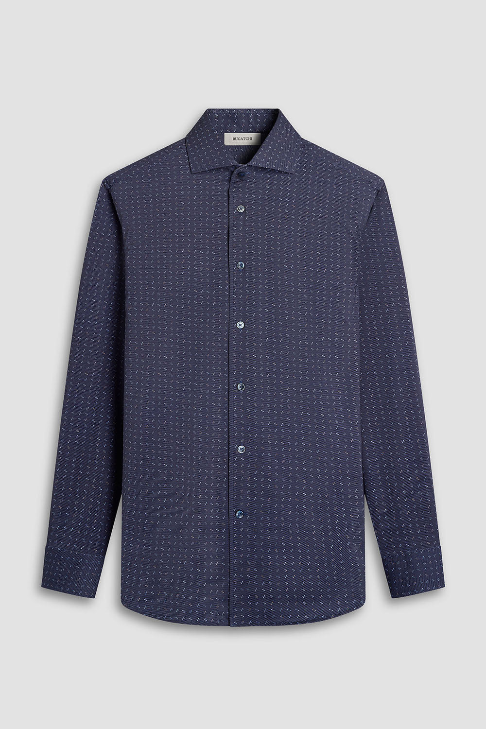 Bugatchi long-sleeved shirt in features a point collar, mother-of-pearl buttons, and a curved hem for a sleek tucked or untucked look. The notched cuffs are adjustable to allow for customized fit and also convertible to accommodate cufflinks. OoohCotton® is a performance, double-mercerized, wrinkle-resistant, breathable, and easy-care cotton blend with 8-way stretch, quick-dry, and thermal comfort properties. HF9209K80