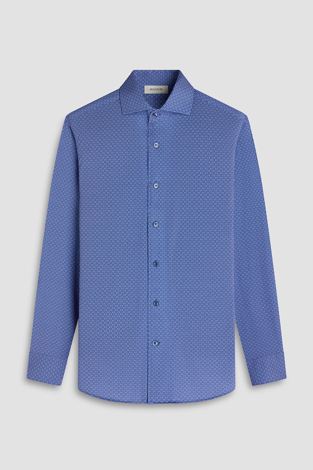 Bugatchi long-sleeved shirt in features a point collar, mother-of-pearl buttons, and a curved hem for a sleek tucked or untucked look. The notched cuffs are adjustable to allow for customized fit and also convertible to accommodate cufflinks. OoohCotton® is a performance, double-mercerized, wrinkle-resistant, breathable, and easy-care cotton blend with 8-way stretch, quick-dry, and thermal comfort properties. HF9334K80