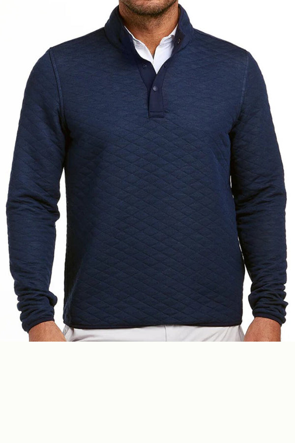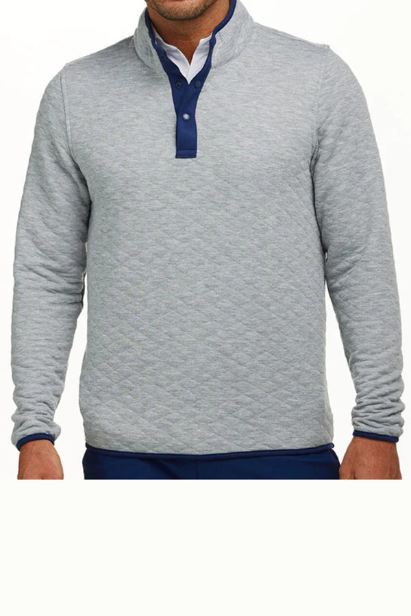 The Sullivan snap-button pullover features buttery soft fabric, diamond-quilted insulation, and contrasting trim for a classic look. A great combination of casual style and cold weather performance, this pullover transitions effortlessly on and off the golf course. HB2342