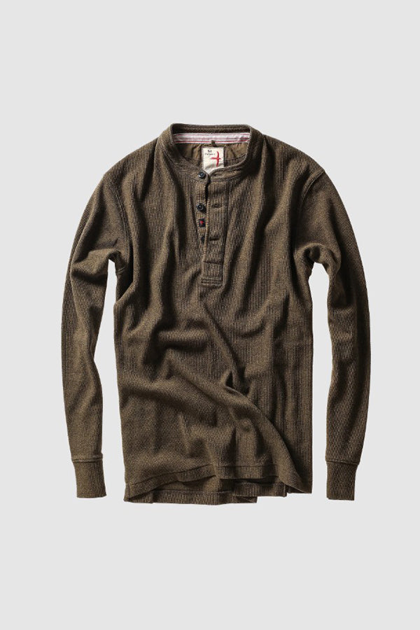 Derived from vintage military undergarments, our latest henley is as adept worn over a woven shirt (like a lightweight sweater) as over a t-shirt. The lightweight rib material is soft brushed and knitted to allow easy movement while holding a modern shape. M406802