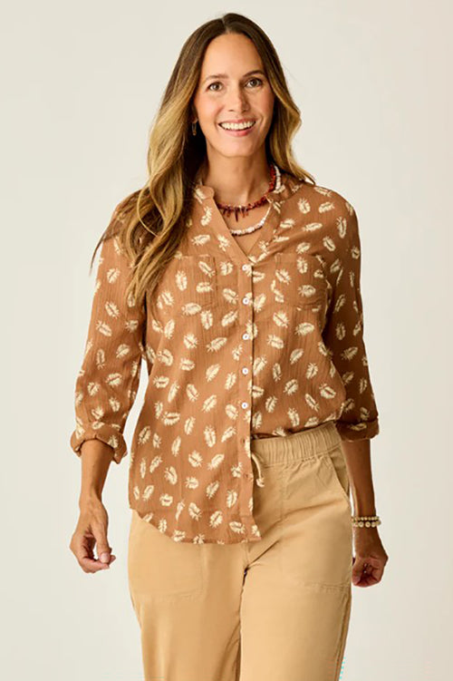 Our favorite Coastal Gauze fabric in a full button tunic style. This top is so versatile it's a must have for all. Layer it over a tank or under a vest. Wear tied at the waist or wear it long and untucked. Organic cotton. Perfect over a swimsuit or dress when sleeves are needed. Great for travel! TWTC52