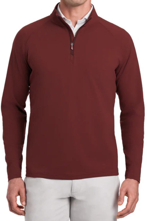 Shrug off the chill of early-morning tee times in this lightweight performance quarter zip with a subtle ribbed texture. The Stuart, sewn from a luxurious performance blend that's treated for superior softness on the interior, features UPF 50+ sun protection, moisture wicking, and 4-way stretch. HB2329