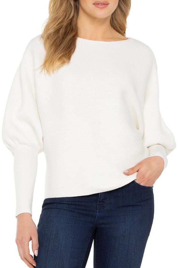 Relaxed by design, refined in detail. This rib knit sweater features a modern boat neckline and dolman sleeves that drape with ease. It's the effortless knit that balances comfort and polish—perfect with denim by day or tailored bottoms by night. LM8H68SR11