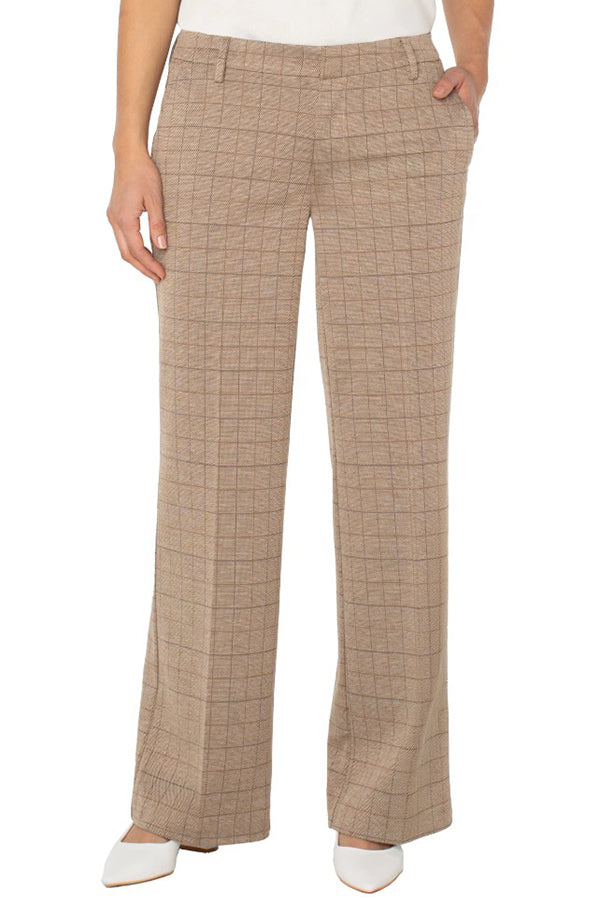 The Kelsey Wide Leg Trouser showcases crisp tailoring and a modern silhouette in a refined khaki grid check. Designed to flatter with clean lines and subtle structure, it's a versatile wardrobe staple that transitions effortlessly from work to weekend. Style it with the coordinating blazer for a cohesive, elevated look. 31" inseam. LM4654TL45