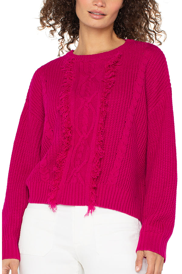 Texture, movement, and modern edge. This sweater features a mock neckline, rib trim, and playful fringe detailing that redefines cozy with a statement twist. The perfect knit to pair back to denim or layer with polished separates for a look that feels both effortless and bold. LM8H50SR21