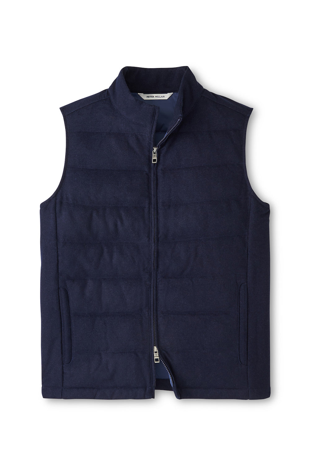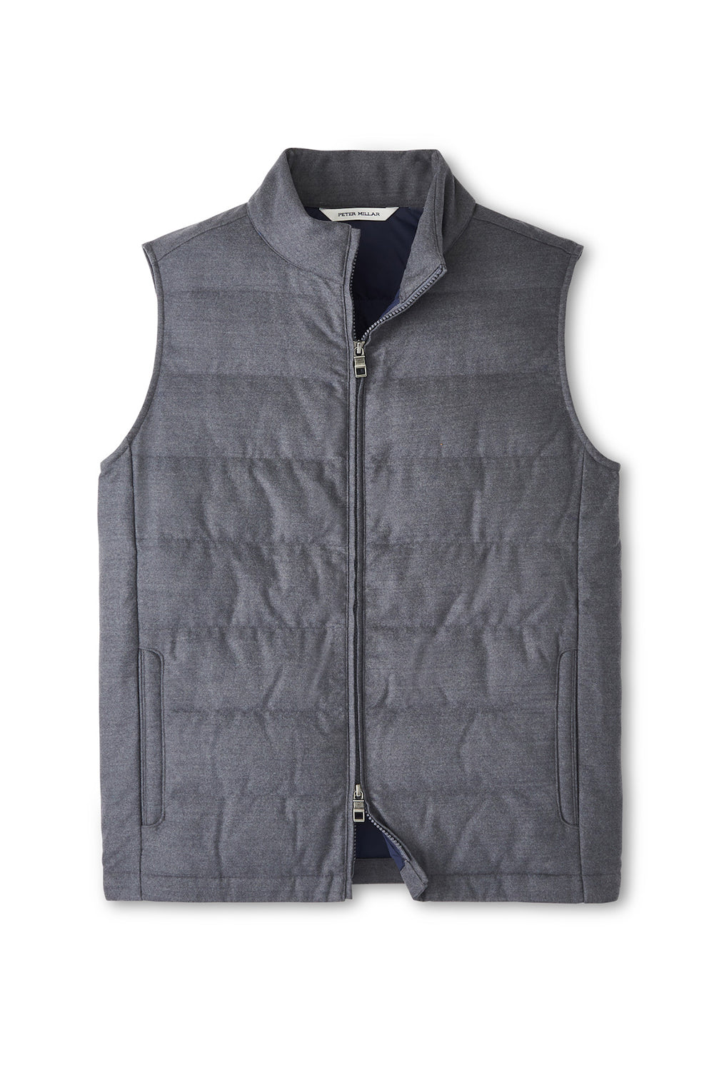 his streamlined channel quilted vest is designed for versatile cool-weather wear. Crafted with luxurious Italian wool and pillowy soft down-alternative insulation for superior comfort and casual yet sophisticated design. Finished with a two-way zip closure. MF25Z40