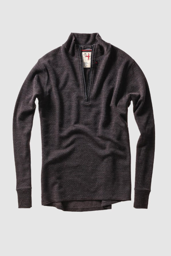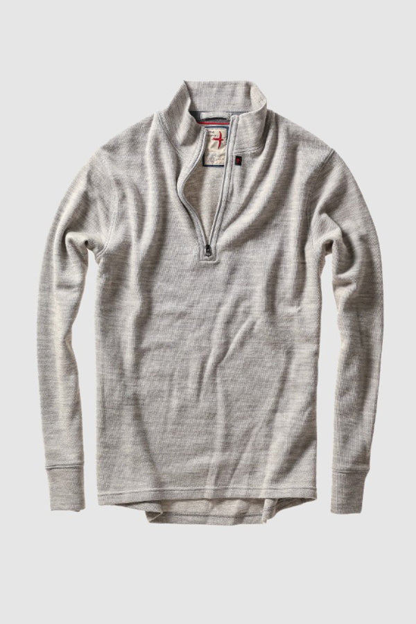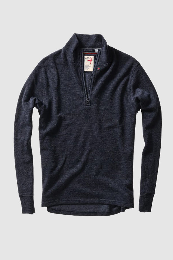 A highly functional double-faced knit—wool to the exterior, cotton against the skin. Our latest quarter-zip looks great on the urban cruiser with its thumbholes and extended length toward the back. Layerable and just a super sophisticated item that has legs 6-8 months of the year. M406100