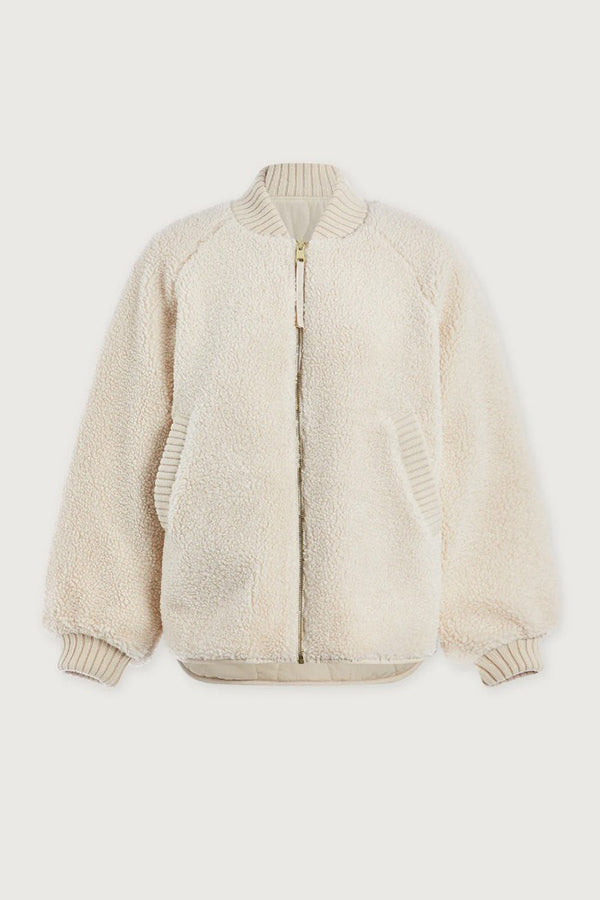 Customize your style with the reversible Serina. Soft, lightweight, and super versatile, it's perfect for effortless transitional and cold-weather layering. Made from a tight, curly Bouclé Sherpa on one side and our Crinkle Shell fabric in quilted design on the other, it's cut to a boxy bomber shape with a flattering curved hem. Complete with pockets and chunky knitted cuffs and collar. VAR02796
