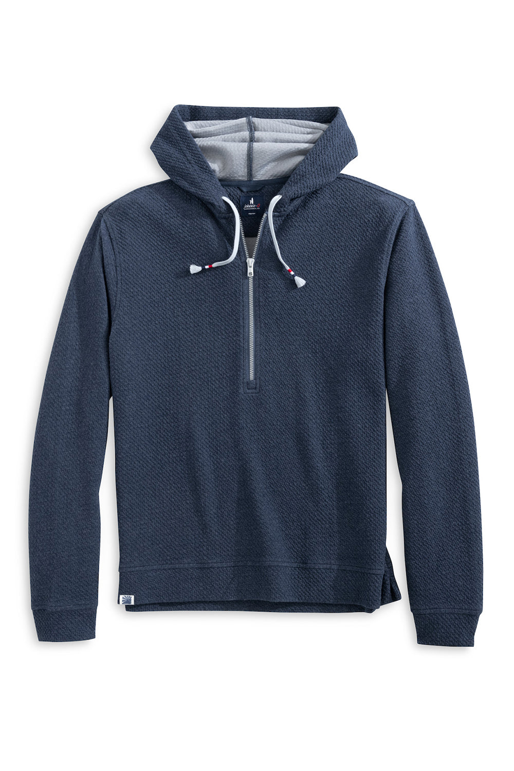 Made with our Lakewave fabric, named for it's noticable texture that resembles—you guessed it—waves on a lake, this half-zip hoodie is a formidable candidate for your new favorite layer for everything from the morning dog walk to the sports bar. Finished with high-quality hardware and an Americana-inspired red, white, and blue detail on the drawstring, this is casual style done right. JMHD100330