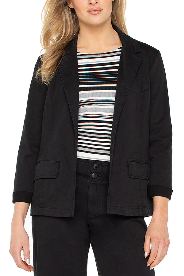 Instantly feel cool and sophisticated in our soft touch twill fitted blazer! Wear to work on business meetings or keep it casual with denim and your favorite tee! LM1067L12